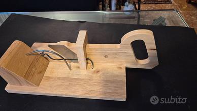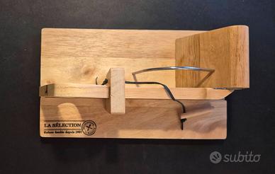 Affettatrice per salumi in legno, modello La Selection. Realizzata in legno di alta qualità, presenta un design robusto e funzionale. - Struttura in legno. - Lama in metallo. - Manico in legno per la movimentazione.