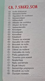 Articolo nuovo ancora confezionato mai usato, marca Alpina garanzia di qualità. Adatto per lame in ceramica e acciaio. Misura 7,5x6 cm altezza 2,5 cm.