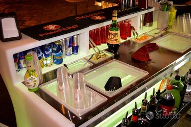 Affitto banco bar professionale modulare in condizioni pari al nuovo, ideale per allestimenti temporanei o utilizzo continuativo.