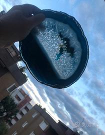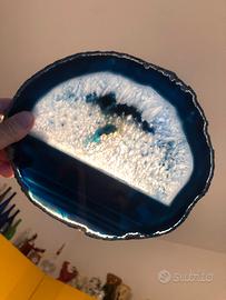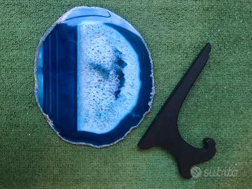 Fetta 25 x 25 circa di agata blu azzurra con piedistallo 500 grammi Bellissima, quasi trasparente come vetro.