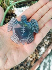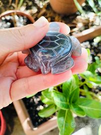 Esemplare di Agata a forma di Tartaruga con un piccolo geodino sulla codetta. Nella prima foto la tartaruga è sotto il sole diretto, nelle altre è all'ombra.