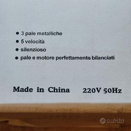 Agitatore da soffitto nuovo in scatola originale. Diametro 120 ,3 pale bianco senza luce con comando a muro 5 velocità. Silenzioso!