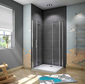 NUOVO Aica Italy Box Doccia Angolare 90x100 Cm Doppia Porta Apertura Battente Pieghevole In Vetro Temperato Trasparente Anticalcare Alto 195 Cm