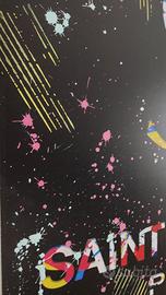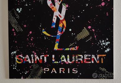 Artista: AIRON (famoso per le sue collaborazioni e per le opere presenti in gallerie e collezioni private). Soggetto: Logo monogramma YSL e lettering "Saint Laurent Paris". Stile: Urban Pop Art. L'opera è caratterizzata da una complessa stratificazione di colori e texture all'interno delle lettere, con un contrasto netto su fondo nero "Deep Black". Dettagli Tecnici: Gli iconici schizzi di vernice (drip & splatter) e le linee cinetiche gialle sono il marchio di fabbrica dell'artista, rendendo ogni pezzo dinamico e unico. Atmosfera: Un'opera che trasuda lusso, ribellione ed eleganza. Valore Artistico: Le opere di AIRON sono molto ricercate e tendono a mantenere o aumentare il loro valore nel tempo Pezzo d'Arredo Unico: Non è una semplice stampa commerciale, ma un'opera con un'anima urban che trasforma radicalmente l'estetica di una stanza. Condizioni: Perfette, conservato con massima cura.