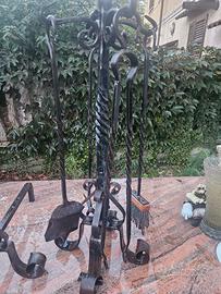 vendo n.2 alari per camino in ferro battuto alt.46cm. lunghezza.45cm largh.33 più kit completo sempre in ferro battuto altezza 86 cm.