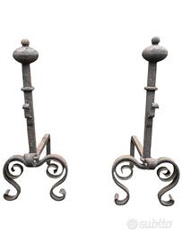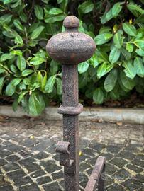 Antica Coppia di Alari da Camino in Ferro Battuto