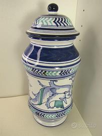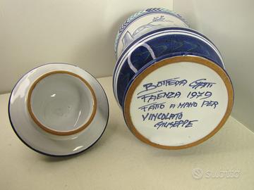 Albarello vaso pot Bottega Riccardo Gatti Faenza firmato 1979 2 delfini fatto a mano