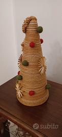 Vendo alberello di Natale realizzato in corda con addobbi alto 28 cm ottimo come centro tavola o regalo di natale benaugurale.