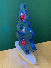 Alberello di Natale h. 18 cm illuminato con interruttore e 2 pile CR2032, disegnato e costruito con stampante 3D utilizzando materiale Pla+.
