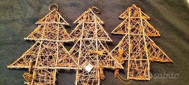 Set 3 alberi Natale luminosi realizzati in legno, completi ciascuno di 20 lampadine 12V. Altezza cm 50, larghezza massima cm 41, dotati di cavo da cm 40