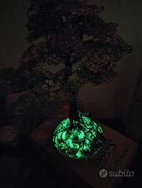Albero da arredo fato a mano con filo di alluminio con aggiunta di polvere luminose se esposte alla luce solare