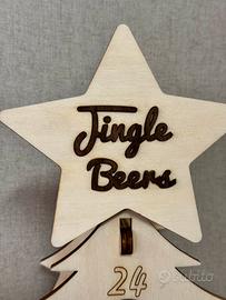 Albero dell'avvento cantinetta birre JINGLE BEERS. Prodotto artigianale. EDIZIONE LIMITATA. Originale idea regalo per l'avvento. In legno tagliato a laser. Altezza circa 80 cm ad incastri, smontabile. Scritta JINGLE BEERS in rilievo in legno.
