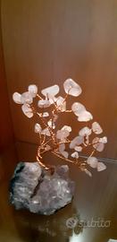 Bellissimo alberello in Quarzo rosa intrecciato con rame fissato si Ametista Eseguito anni 80