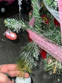 Albero di Natale altezza 150 cm, diametro circa 85 cm, con due tipi di rami diversi come in foto e neve sui rami (ne è rimasta poca).