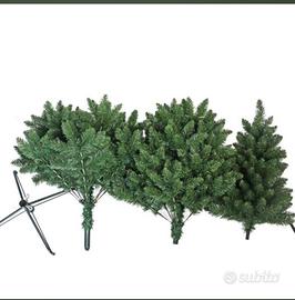 Albero natalizio di 180cm provvisto di cavalletto di sostegno che ne aumenta sensibilmente l'altezza. Di tipo componibile con i rami che vanno montati in ordine prestabilito. Unica pecca è che ho smarrito una delle cime che compongono la base, ma se il vuoto da essa lasciato lo si fa coincidere con la parte non visibile, il problema non sussiste.