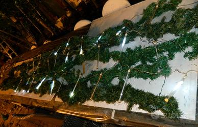Regalo diverse ghirlande finto abete appendibili all’interno o esterno con luminaria effetto pioggia/neve per un totale circa di 12 mt ghirlande e 10 mt luci.