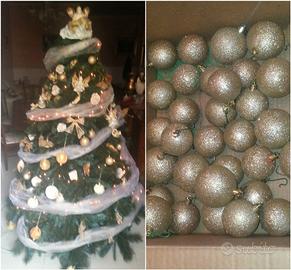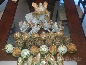 Comprende: palline dorate piccole e grandi, angioletto alla punta, cappellini, roselline, borsettine, fiocchettini, palline di altro materiale, 3 serie di luci,ok rotolo di stoffa decorativo per avvolgere l'albero. Posso mandare altri particolari di addobbi.
