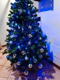 Vendo albero alto 160 cm compreso di Set luci bianche e blu Set luci bianco caldo Set di pigne vere Set palline argento e blu Set di elementi decorativi argento