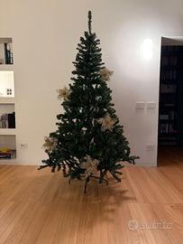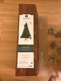 Albero di Natale marca “Everlands” modello “Monarch Pine”, alto 210 cm e diametro 126 cm, colore verde, composto da 3 elementi impilabili + piedistallo. Albero come nuovo, usato una sola volta e completo di confezione originale. In aggiunta filo di luci led della lunghezza di 18 metri con 7 variazioni luminose e timer + 5 decori floreali dorati (tipo stella di Natale) dotati di clip per il posizionamento. Solo ritiro zona Maciachini.