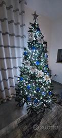 Vendo Albero di Natale con addobbi (palline in vetro blu e in plastica argentate) fiori e luci bianche led.