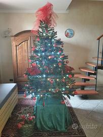 Albero di Natale h 200 cm componibile con luci +addobbi oro, blu, bianco, rosso , argento