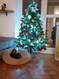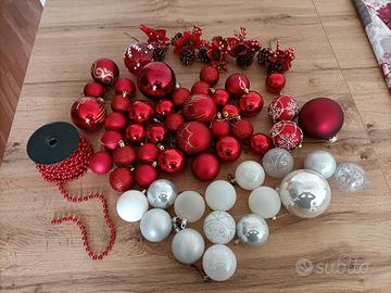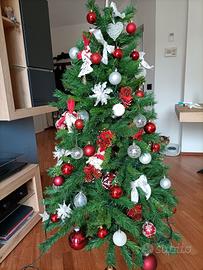 albero 160cm con piedi addobbi rossi e bianchi/argento come in foto, palline di plastica