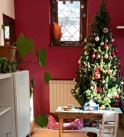Albero di natale datato ma ancora in buono stato, alto 2,30 m è più. I rami più bassi tendono in giù ma basta rimodellarli. Palline e luci non comprese. L’albero e contenuto in due borse acquistate l’anno scorso 120x35x50.