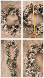 Altezza 210cm, includo anche ghirlanda di diametro 38cm circa e ramo innevato di circa 250cm.