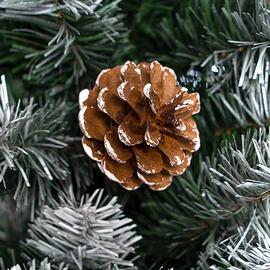 Innevato nelle punte con decorazione di vere Pigne. Foglie verdi tono su tono e marrone per i rami;