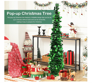 Albero di natale pieghevole alto 150cm . Con luci led 5m, Con pailettes