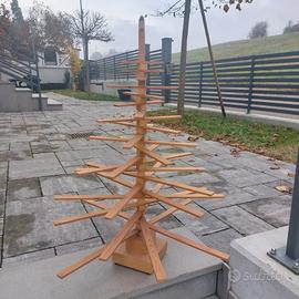 in legno di abete grezzo naturale H. 90 cm. L. max 72 cm. con rami orizzontali regolabili in rotazione indipendente. Da piturare e decorare a piacere.