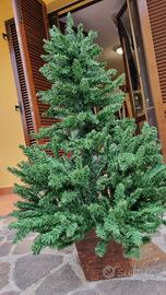 Albero di natale sintetico con vaso in legno nella scatola originale. L'albero è completo, montabile, composto da due pezzi