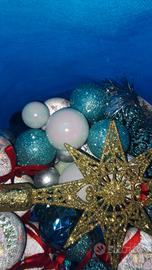 Vendo albero di Natale alto 1.80 /2.00 a rami singoli con addobbi blu/azzurri, cesto copri base e luci.