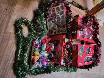 Vendo albero di natale (Canadian pine) altezza circa 1,5m con vasto assortimento di palline e decorazioni varie, festoni e luci di babbo natale!