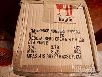 !° - Albero di Natale colore beige in due parti da comporre in scatolone con supporti di altezza circa 1,80 metri;