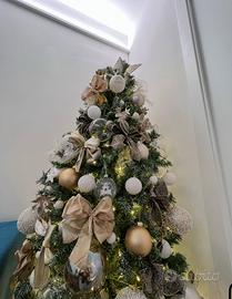 Vendo bellissimo albero di Natale verde (vendo senza decorazioni: palline e luci ) nelle foto si vede bianco grazie alla neve spray ma l’albero di natale viene venduto pulito e verde.
