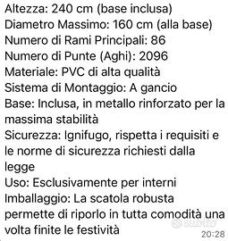 Albero di Natale nuovo usato solo 2 anni, vendo per trasloco in casa più piccola. 240 cm x 160 cm, base inclusa, montaggio con ganci suddivisi a numeri e colori.