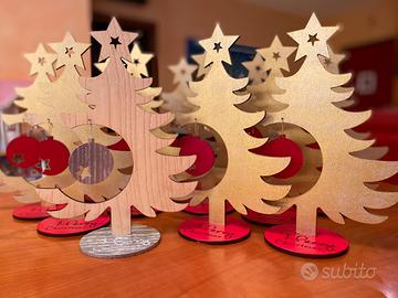 Realizzo Alberi di natale da tavolo 26cm legno tinto oro e rosso. Ottima idea regalo per amici o clienti. Taglio laser e Scritta sulla base in marcatura. Ritiro a mano a Oppeano