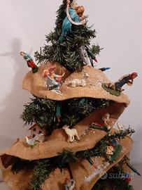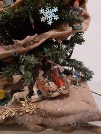 Albero/presepe decorato a mano. Misure 90x50 cm. Buone condizioni, da sistemare qualche dettaglio. Completo di luci.