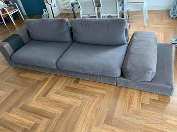 Vendo divano colore grigio in tessuto in ottime condizioni, prezzo trattabile. 230cm+70cm pouf agganciabile al divano tramite gancio d’acciaio a forchetta.