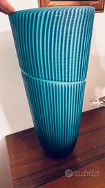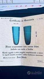 Vaso Acquamare con canne blu battuto con mola a freddo e con profonda incisione a spirale eseguito completamente a mano da esperti vetrai muratesi... maestro Alberto Donà... disegno attribuito a Lino Tagliapietra Certificato di garanzia ... no scatola..