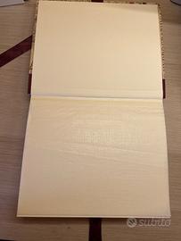 Album foto artigianale, dimensioni 21x25. Nuovo, ma con qualche macchia di umidità, come si vede in due foto.