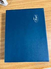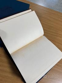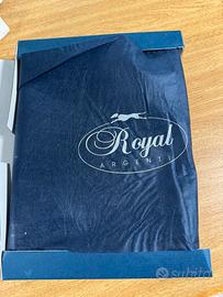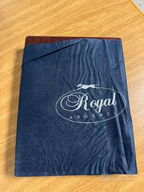 Album fotografico con copertina in tessuto blu e dettagli in similpelle marrone. - Logo Royal Argenti stampato sul davanti. - Design elegante e classico.