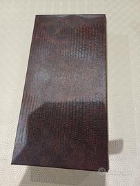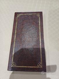 originali album portafotografie a forma di libri enciclopedici in finta pelle color marrone lavorata con elegante bordo dorato sul davanti e sul dorso alloggiati nella sua custodia contenente 3 tomi.
