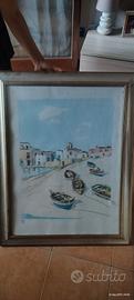 Incisione dipinta a mano originale 50*70 Aldo Riso "il porticciolo". Valutata
