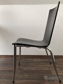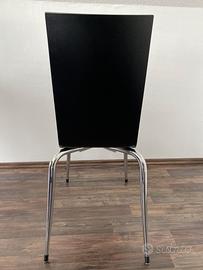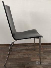 Particolare ed inusuale set ALEPH-DRIADE di 4 sedie OLLY TANGO in finitura nera. Disegnate dal grande guru internazionale del design Philippe Starck, agli inizi degli anni '90. Questo set di 4 sedie Olly Tango è un inno al più puro minimalismo. Struttura portante in alluminio presso-fuso in finitura cromato, con gambe rastremate. Seduta in multistrato di betulla color nero, dello spessore di 10mm. Perfette per un arredo contemporaneo. La colorazione nera molto elegante è molto rara rispetto alle altre finiture di colore. Sono in uno stato Ottimo. Solo alcuni Piccoli e mini segnettini superficiali, sul multistrato, le cromature sono ok. Per il resto sono BELLISSIME. MISURE : L.54 x P.52 x A.90 cm A. Seduta. 45 cm. Il prezzo di Trasporto si intende isole escluse.