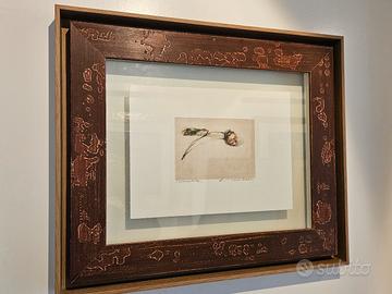 Vendo incisione originale di Alessandro Nocentini, acquerellata a mano dall'artista, con firma autografa dell'artista in basso a destra e tiratura in basso a sinistra. L'opera è risaltata dalla raffinata cornice composita artigianale, sui toni caldi del legno. La bacheca è realizzata in Passepartout trasparente con doppio vetro che dona un raffinato effetto tridimensionale a tutto il quadro una volta appeso alla parete. Dimensioni: incisione interna 29 x 40 cm. Esterno 60 x 70 cm. Spedisco con imballaggio accurato e imbottito per proteggere bene dagli urti e con spedizione assicurata.