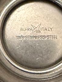 Misurino da Cocktail Alessi vintage. Raro misurino a marchio Alfra Alessi, anni 60/70. Acciaio inox 18/10. Altezza 5,4cm. diametro 3 cm. base 3,7 cm. circa. Buone condizioni considerando gli anni , riceverete esattamente quello che vedete in foto, ( parte integrante della descrizione).