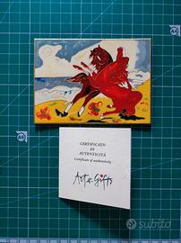 Vendo piastra cm 8,2 x 11,3 in metallo realizzata con smalto colorati di Aligi Sassu. Con certificazione.