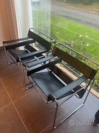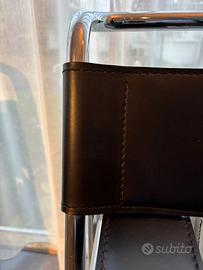 ALIVAR MVSEVM modello 134 . Coppia di WASSILY produzione ALIVAR Design ungherese Marcel Breuer. Struttura in acciaio inox al nikel cromo. Tipo Mannesman, con finitura a specchio . Rivestimento in cuoio nero e cuciture a vista . TUTTO in OTTIMO stato conservativo. Tenute in maniera egregia.